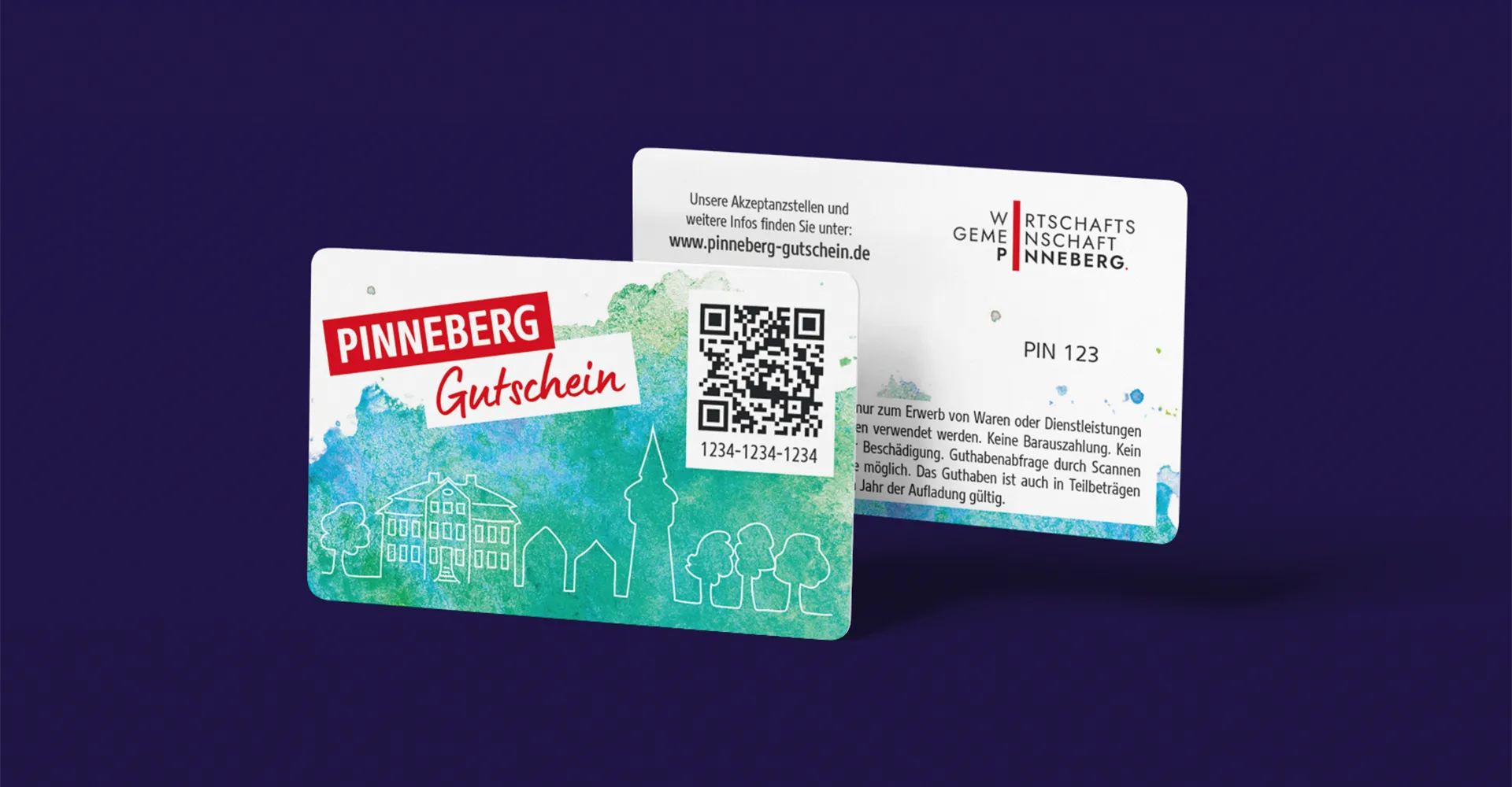 Vor vielen Jahren brachte der Verein den Pinneberg-Gutschein in Papierform als lokales Angebot heraus – ein erfolgreiches Projekt, das nun in ein zeitgemäßes Format überführt werden sollte. Die neue Gutscheinkarte im Scheckkartenformat sollte wiederaufladbar und somit kundenfreundlicher und nachhaltiger sein.